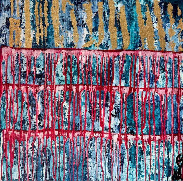 • "Protect Your Energy" Small Original Abstract Drip Painting Infused With Amethyst