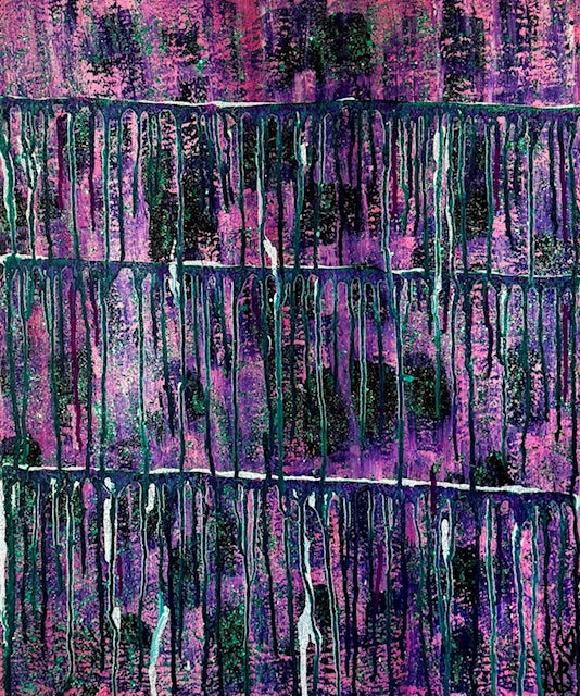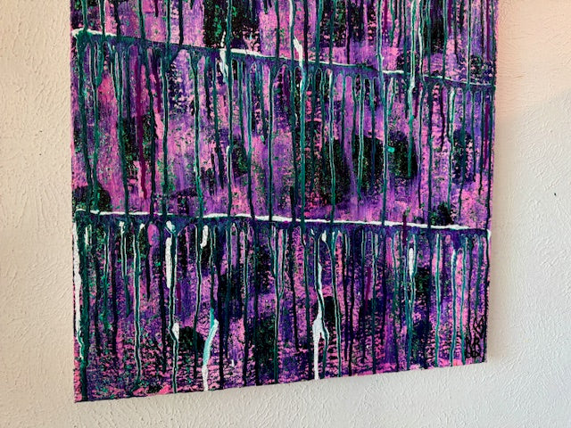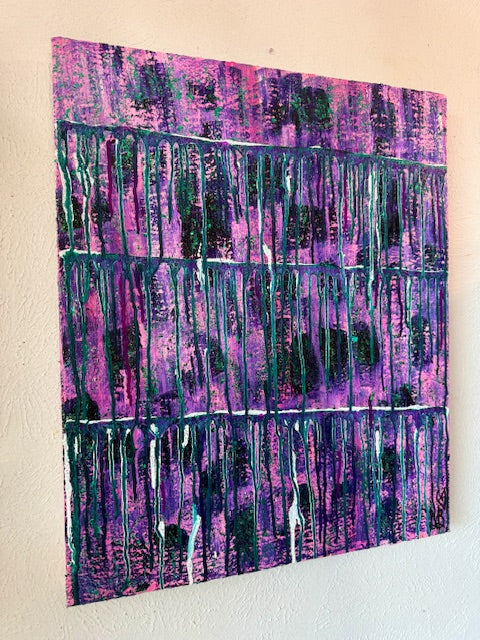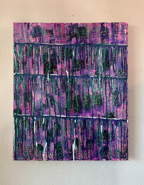 “Dancing Through It All” is a vibrant reflection of finding lightness in the midst of life’s challenges. Infused with selenite for clarity and energetic cleansing, this piece symbolizes movement, resilience, and choosing joy even through chaos. The layered drips and textures mirror the rhythm of surrender—of flowing, feeling, and dancing through every emotion with grace and strength.