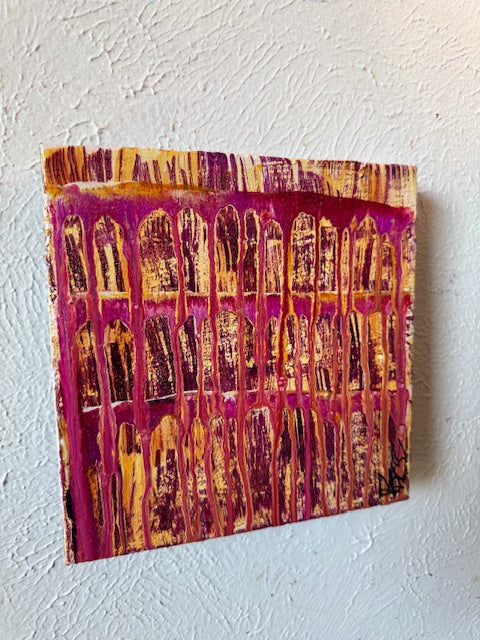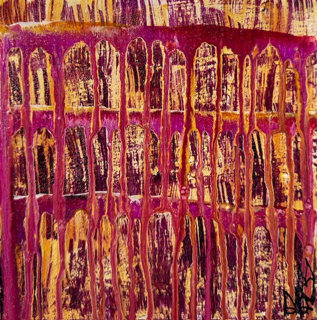 Medium: acrylic infused wiith rose quartz and carnelian on canva