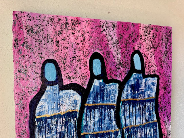 Infused with carnelian for courage and creativity, rose quartz for self-love and emotional healing, and selenite for clarity and cleansing, this piece embodies the powerful act of letting go. Each brushstroke in this original painting carries the energy of release and the promise of authentic beginnings.