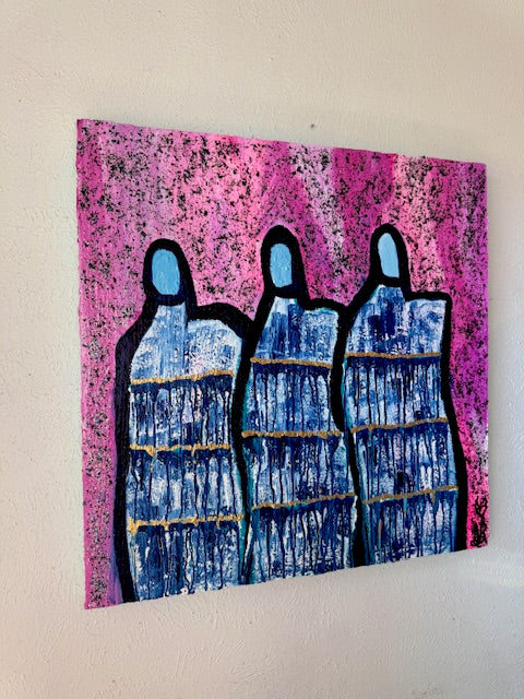 Wash Away is an original abstract figurative painting. The glittered backdrop catches the light, symbolizing the magic that emerges when we release what no longer serves us and make space for something new.