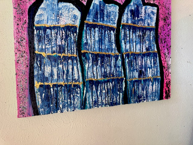 Medium: acrylic infused with carnelian, rose quartz, and selenite on canvas.